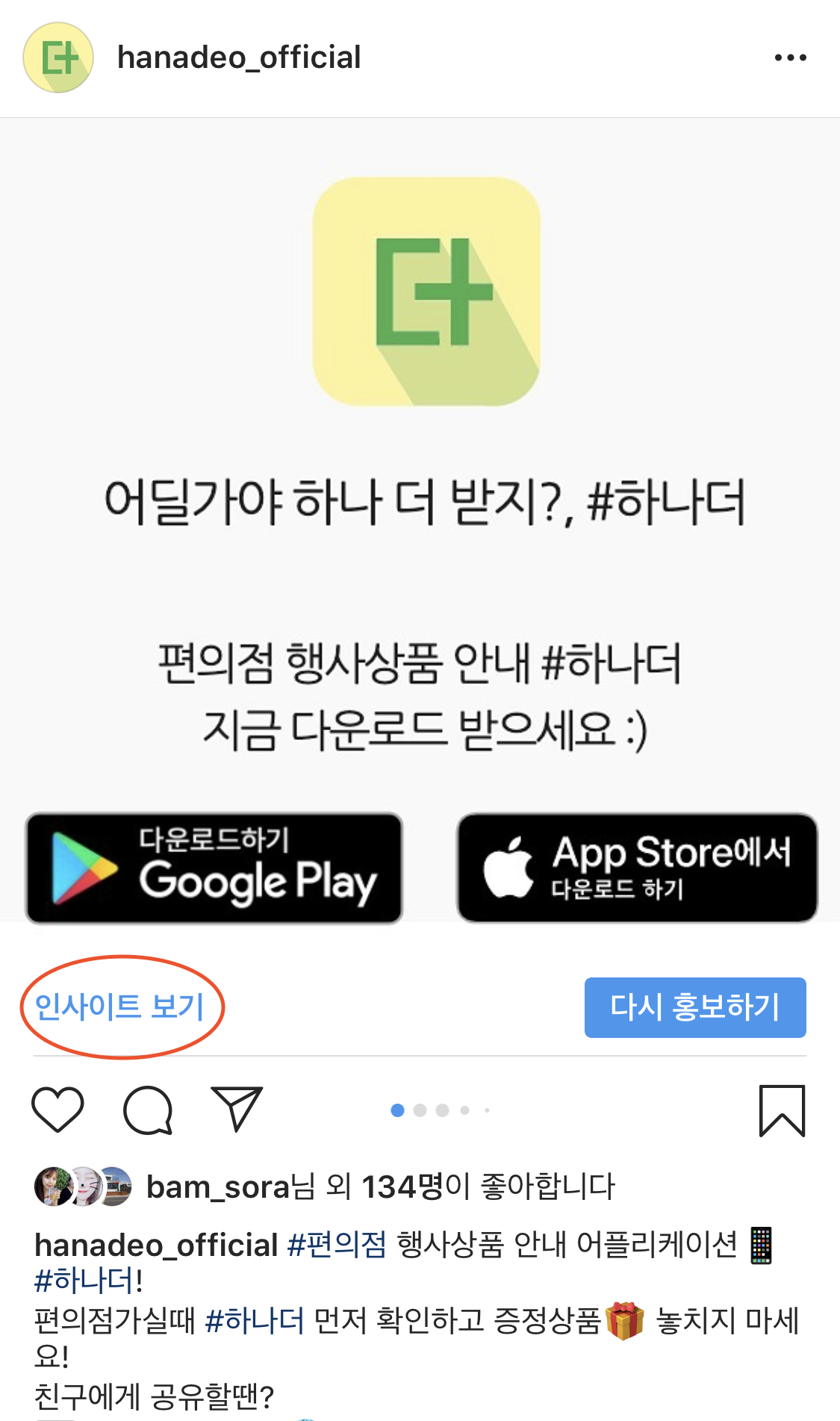 홍보가 시작되면 게시글 하단의 인사이트 보기를 통해 통계를 확인해 볼 수 있습니다.